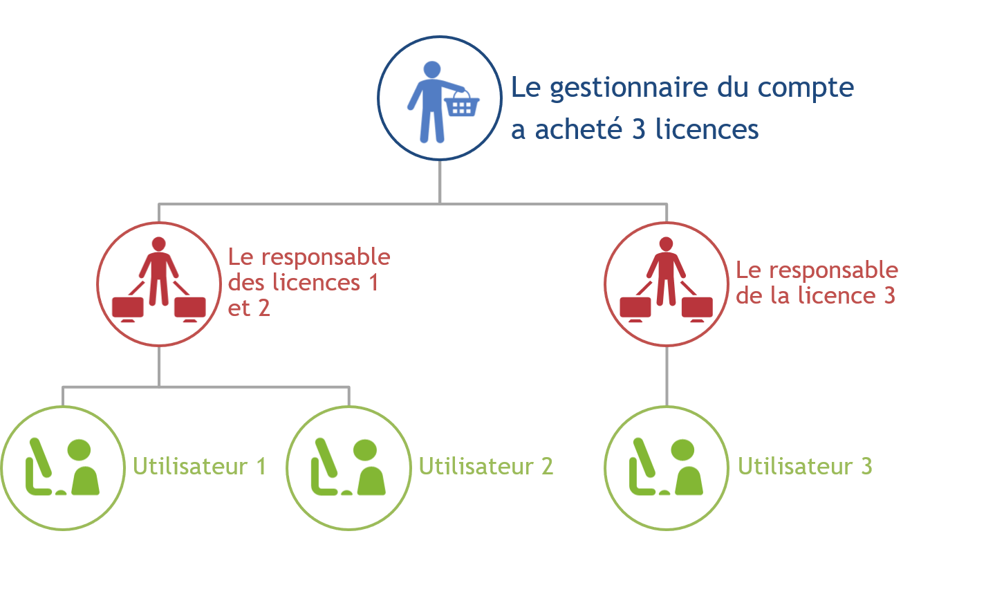 - Gère l’utilisateur final de chaque licence qui lui a été confiée
